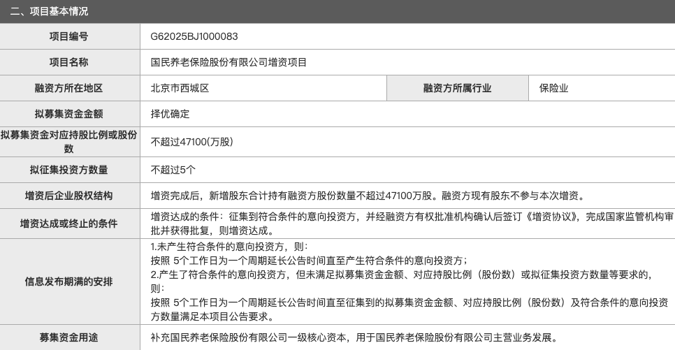 国民养老保险拟引入新股东,增资扩股不超4.71亿股