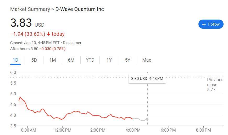 D-Wave Quantum(QBTS)盘中跌超30%、收跌33.6%,Rigetti Computing(RGTI)收跌约32.3%...